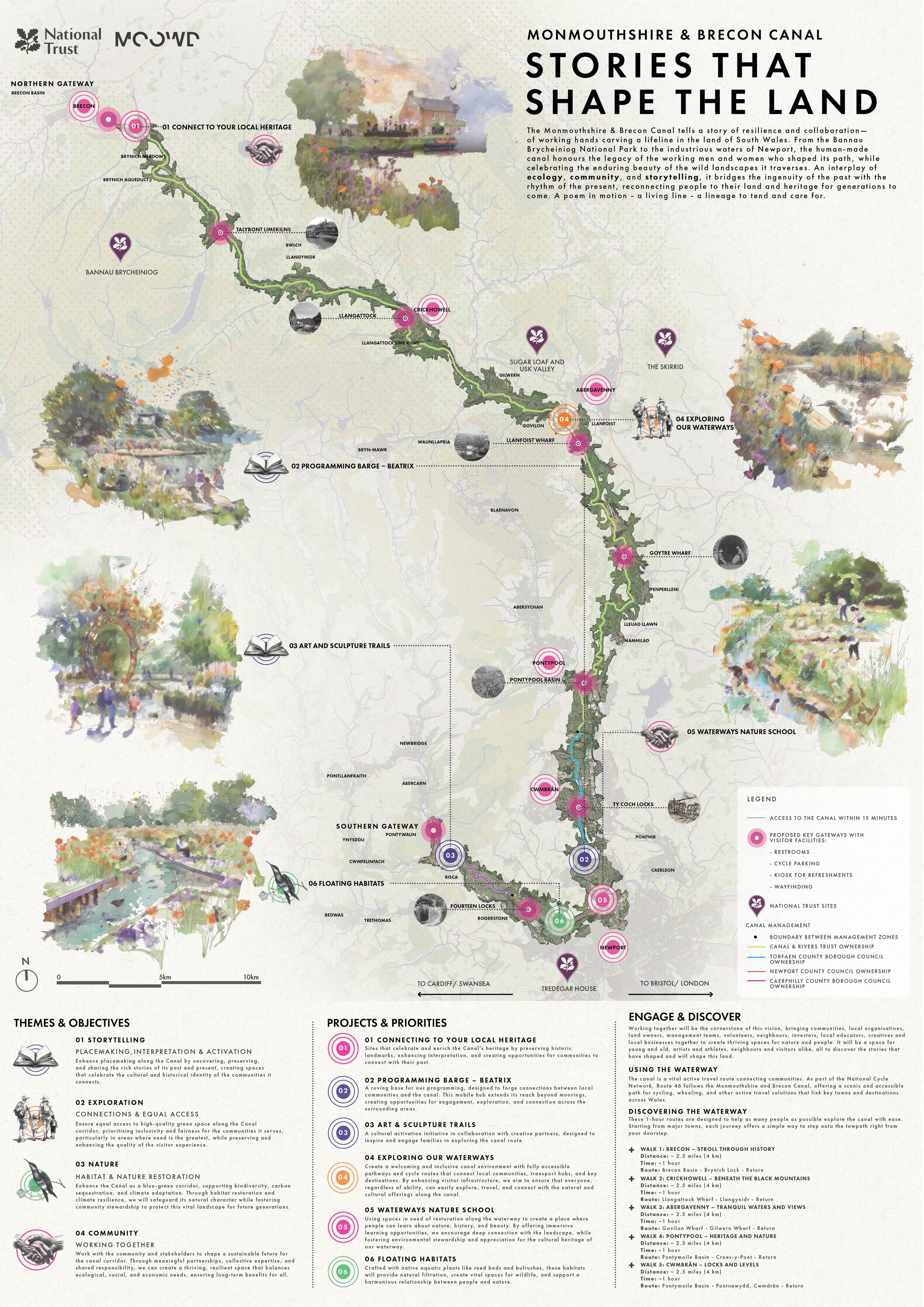 Led by the National Trust and delivered in collaboration with local authorities, communities, and partners, the project is being shaped by MOOWD as lead strategic design consultant. Together, we are crafting a tapestry of interventions — new habitats, community programming, public art, accessible pathways, and story-rich placemaking. These actions are rooted in dialogue and directed by data. The result is a shared space where culture and ecology meet — a canal not just to look at, but to belong to, participate in, and help shape into the future.