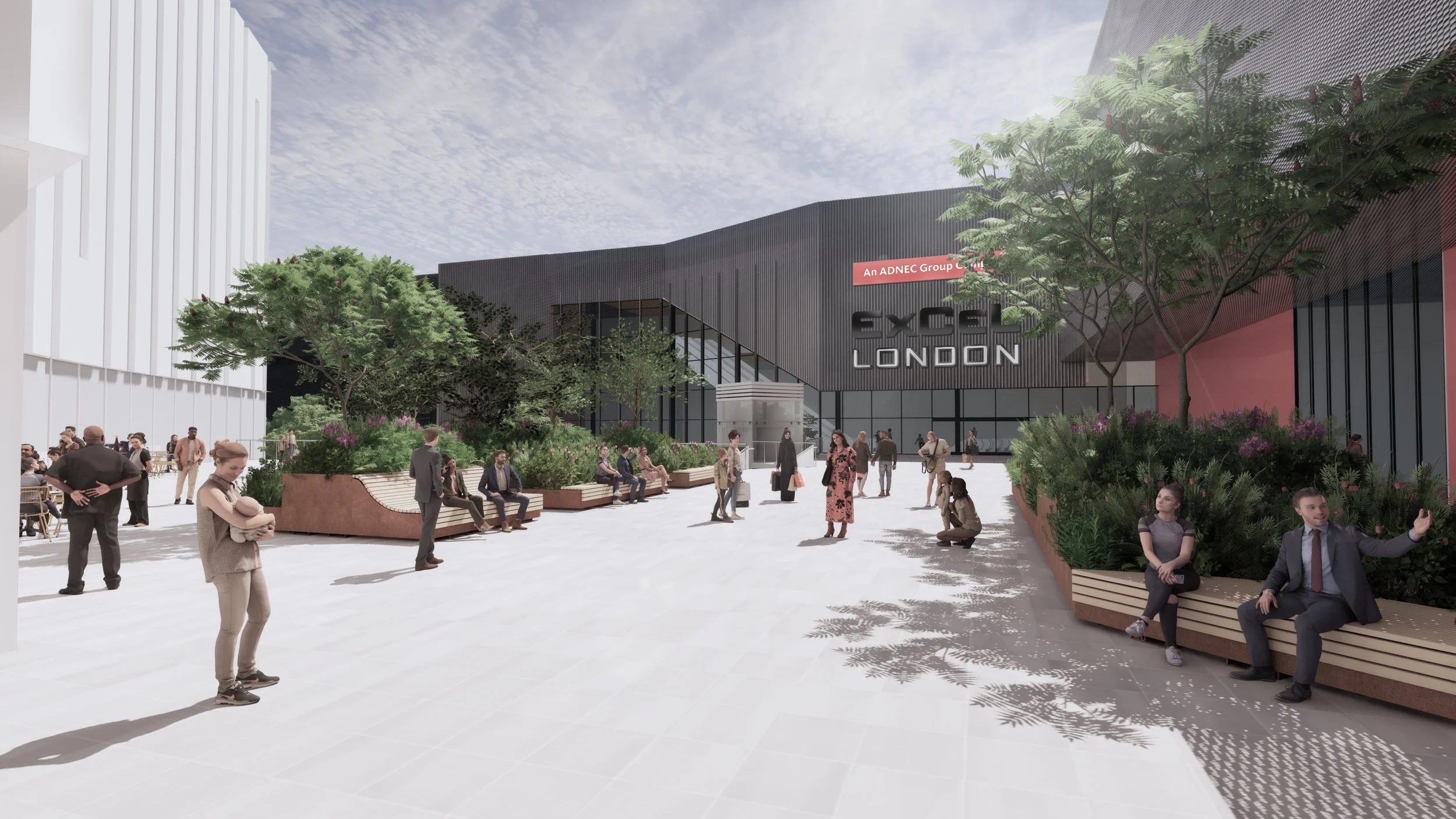 Biophilic planting strategies, nature-based drainage systems, and dock-edge enhancements contribute to environmental performance, while the design’s integration with the Royal Docks Public Realm Framework ensures strategic alignment with wider regeneration goals. ExCeL London Phase 3 sets a precedent for event-integrated placemaking—grounded in local identity, ecological resilience, and inclusive urban design.
